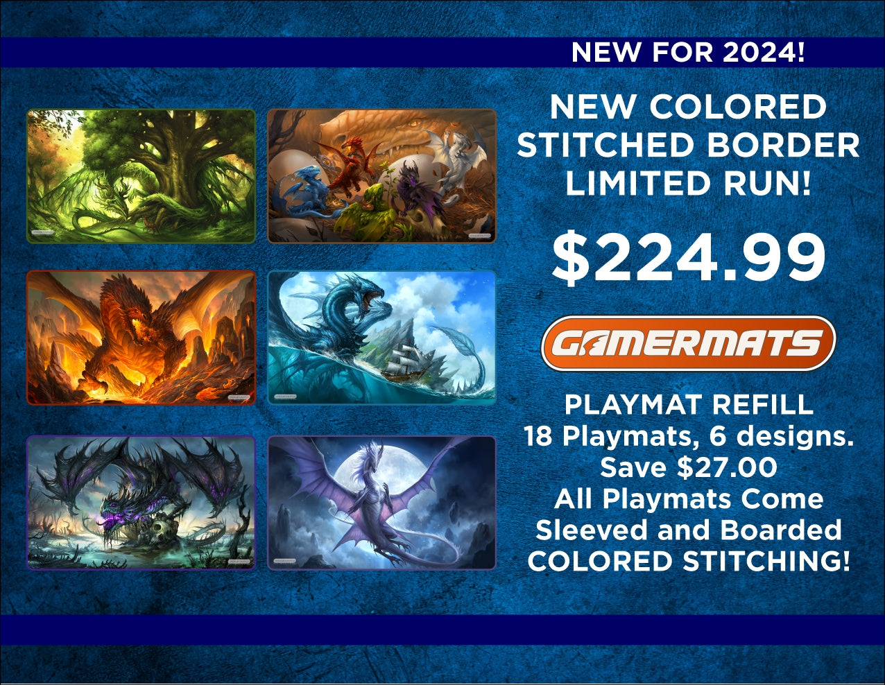 GamerMats PLAYMATS are designed with you and your favorite card games in mind. Made with a smooth cloth top and durable rubber bottom, your cards will move easily, but your mat will not. When it comes to playmats, GamerMats is the name for variety, quality and care!