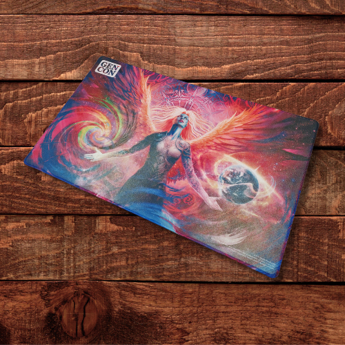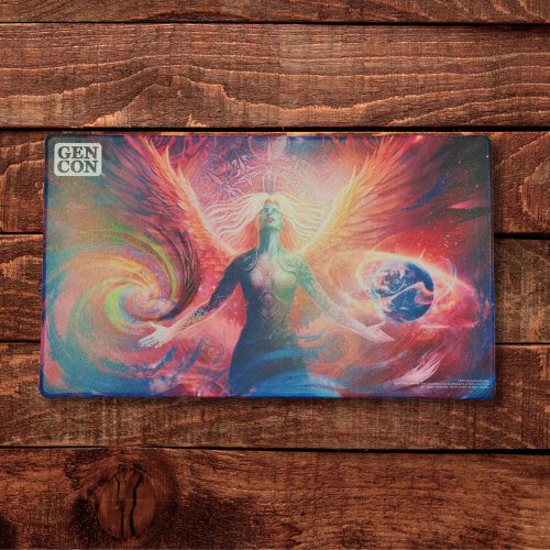 A playmat measuring 14" x 24" x 1/8 with black stitching! Created by they legendary Luciano.