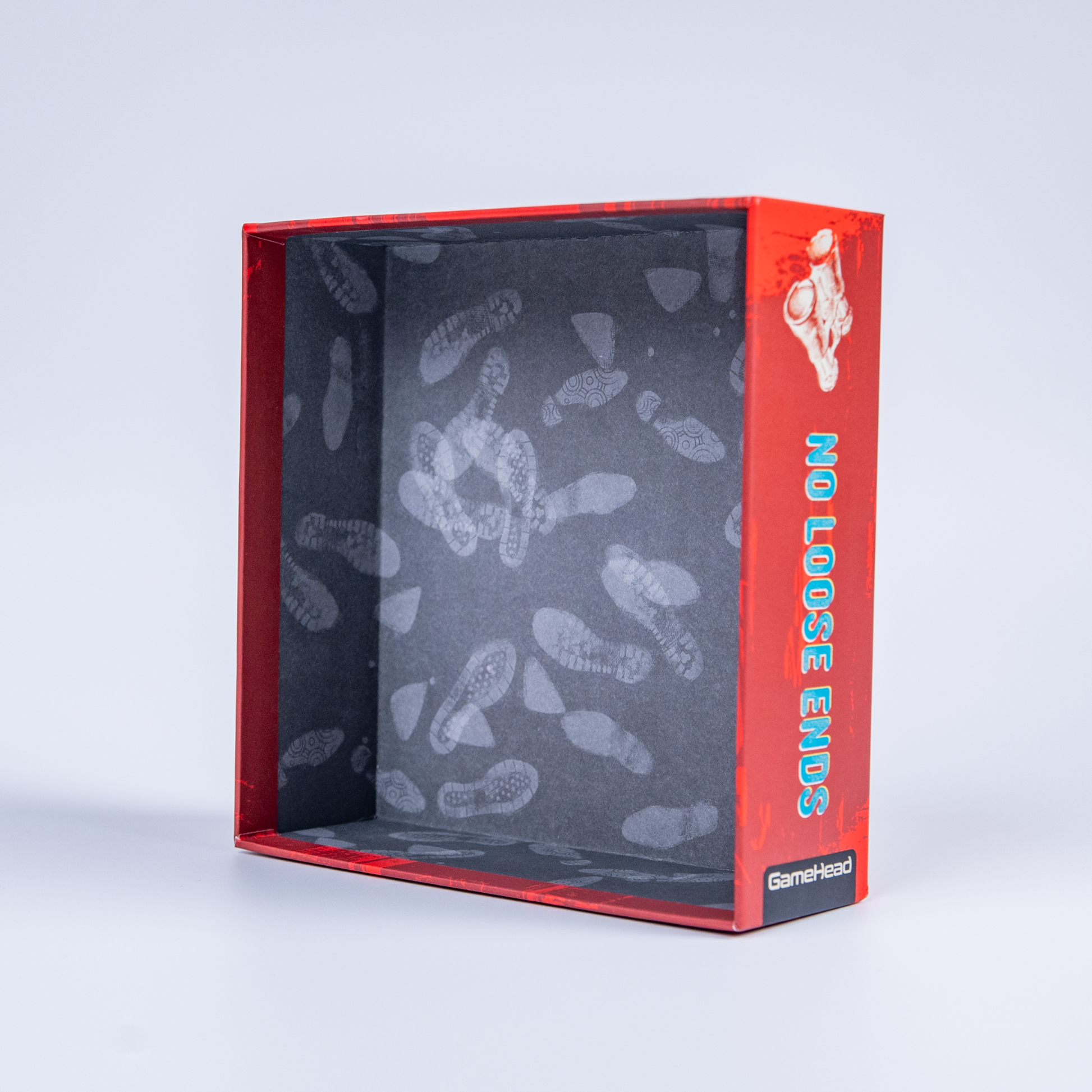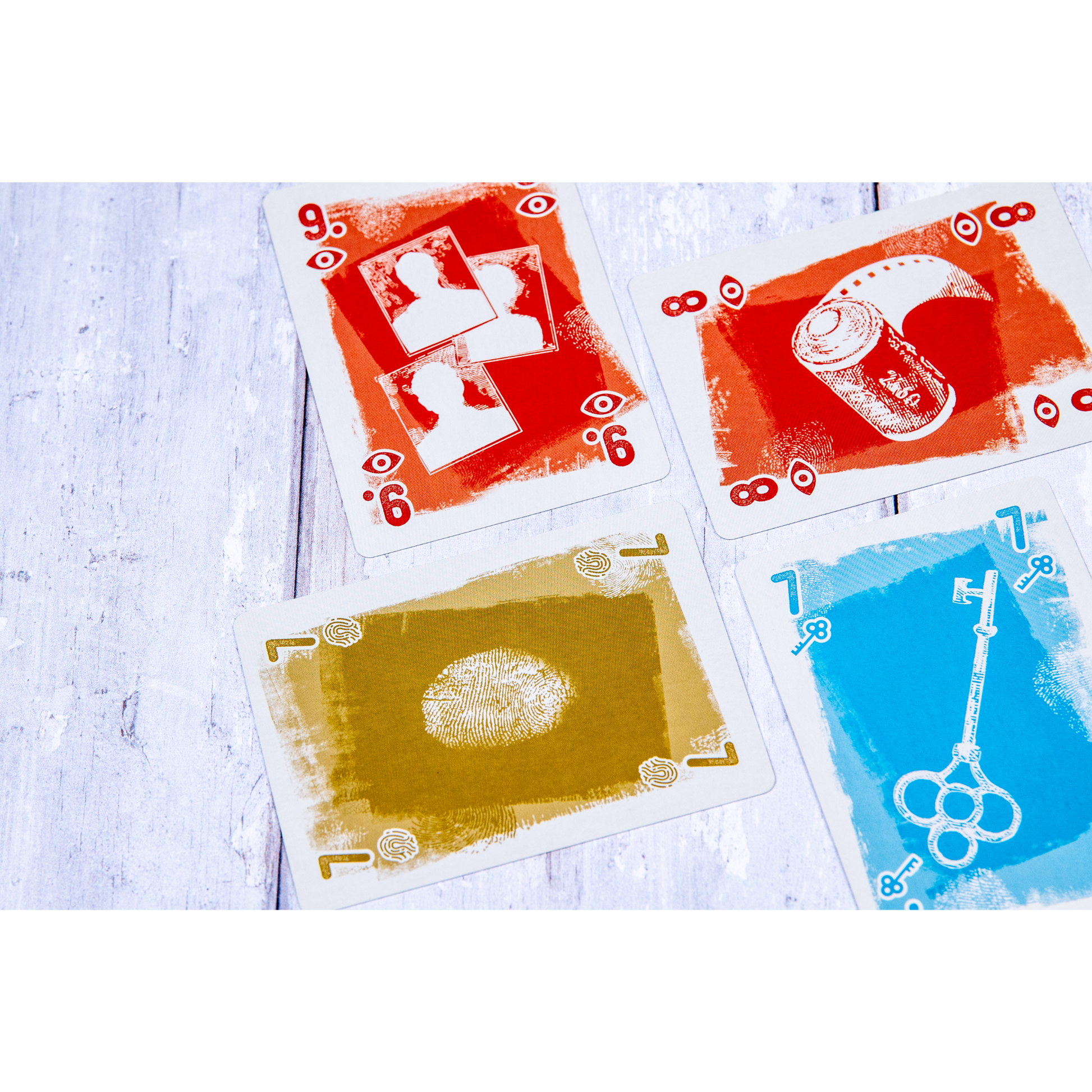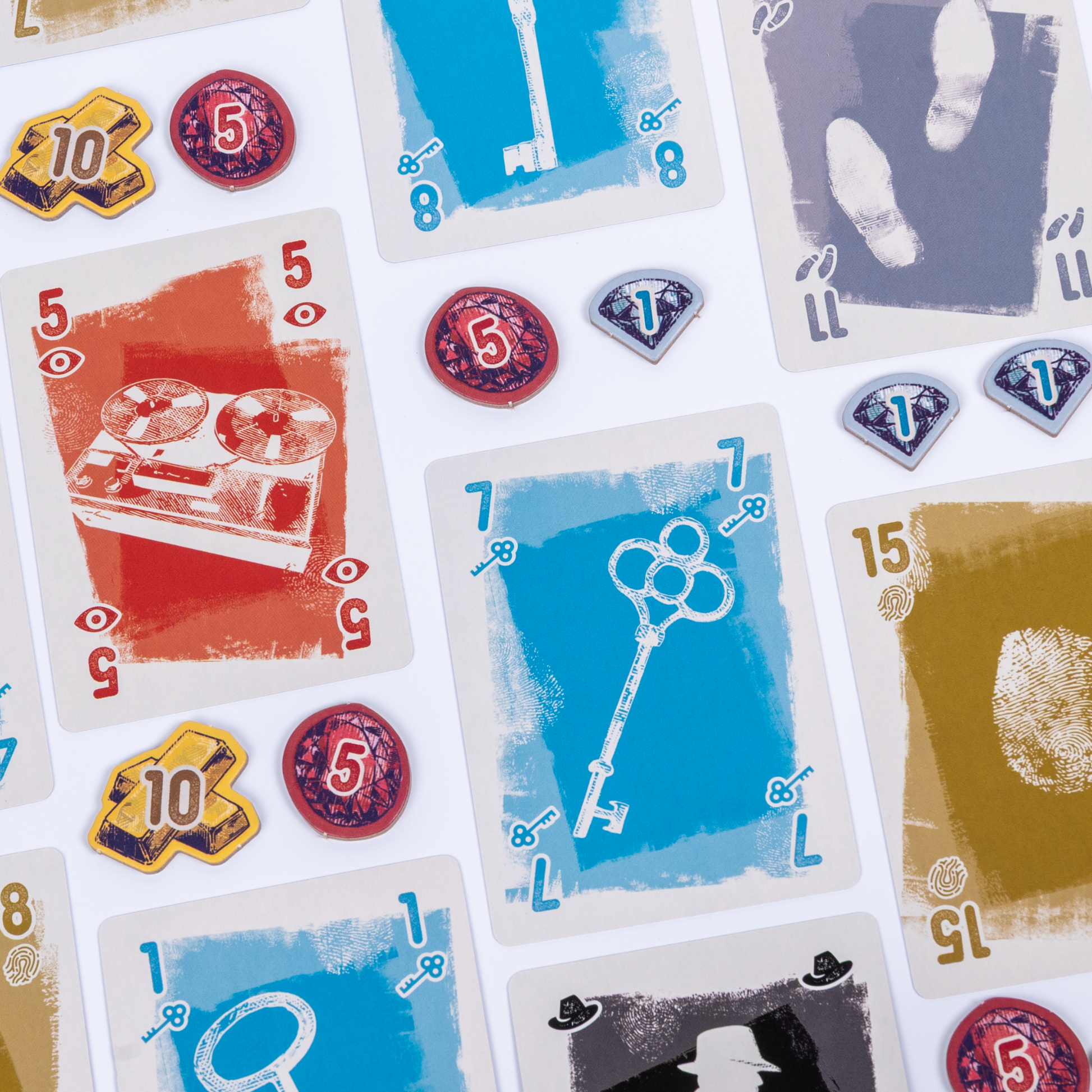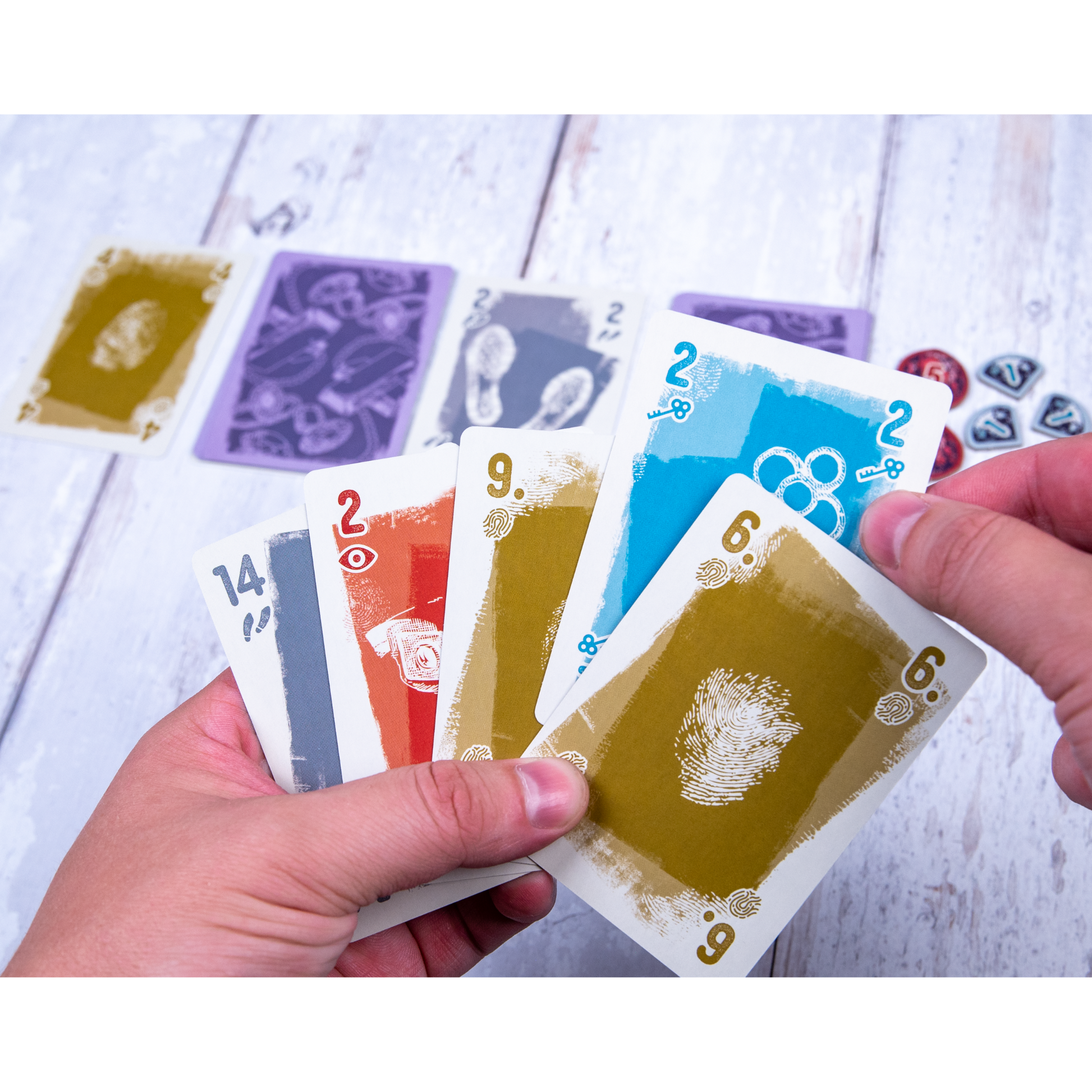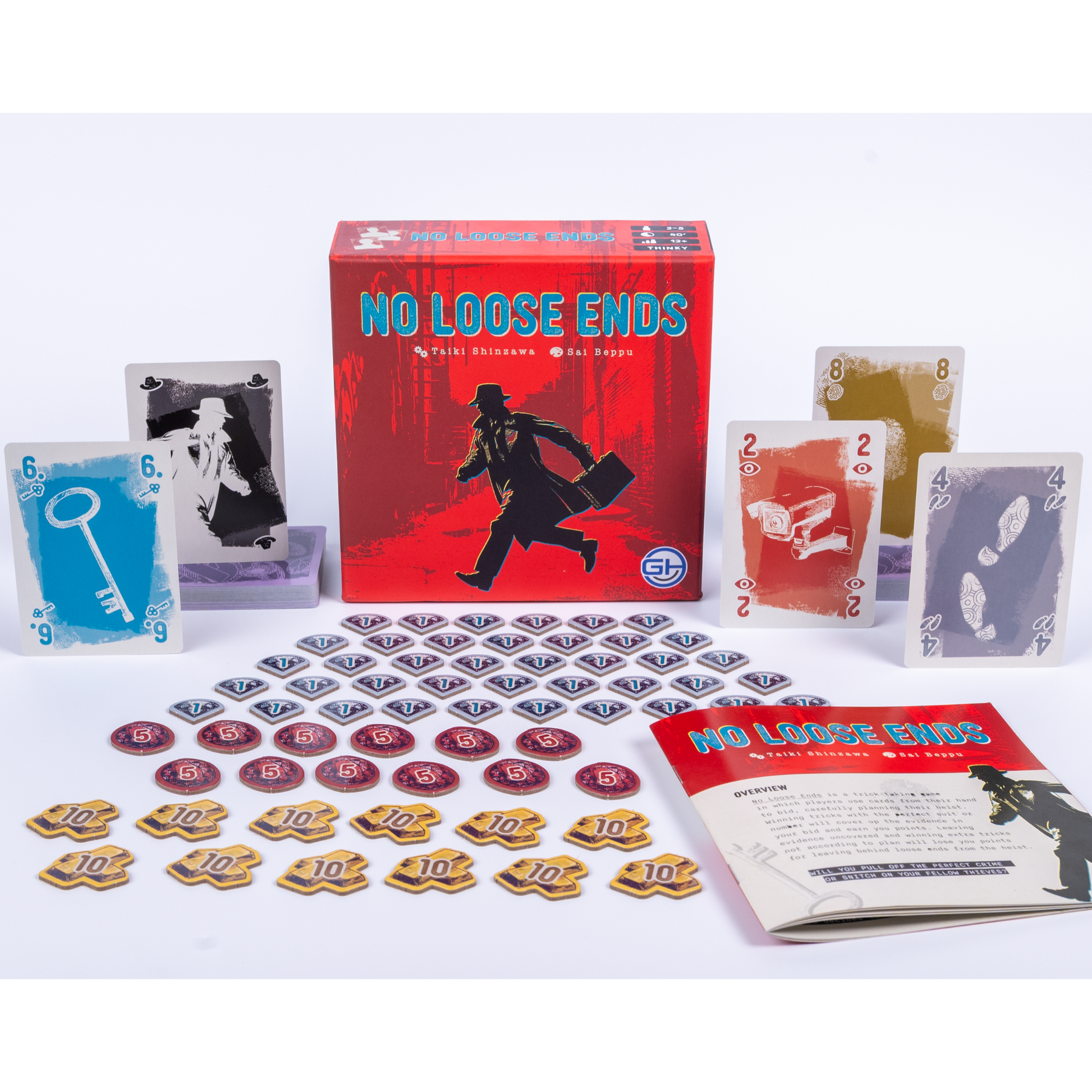 No Loose Ends is a trick-taking game in which players use cards from their hand to bid, carefully planning their heist. Winning tricks with the right suit or number will cover up the evidence in your bid and earn you points. Uncovered evidence and extra tricks not according to plan will lose you points for leaving loose ends from the robbery. Will you pull off the perfect crime or snitch on your fellow thieves?