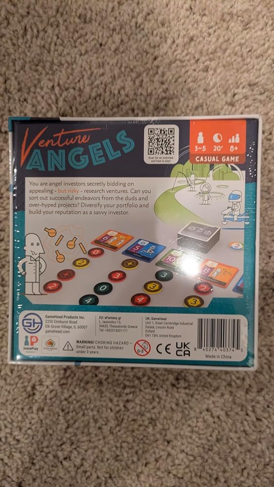 GameHead Venture Angels is a fast-paced gem that packs strategic punch into just 20 minutes.The bluffing and bidding mechanics keep everyone on their toes, especially with a lively group - expect laughs, bold moves, and a few surprise upsets.It’s easy to learn, travel-friendly, and perfect for players who love quick rounds with clever twists. A solid pick for game night investors looking to build their reputation and outwit the competition. Says 8+ but seems to do better with adults over kids.